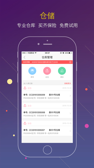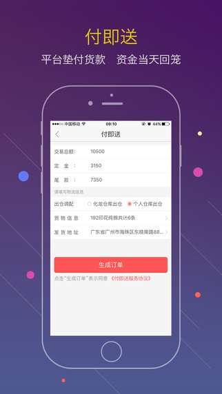 资金回笼 平台整合自建仓储物流与商联支付,联手打造“付即送”功能,最快当天交易当天到账,比传统模式更快回款;上市公司担保,电子支付,回款更安全。