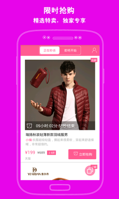 9块闪购是国内首家9块闪购限时秒杀商品的专业网站APP,数千万网购达人用户的选择。