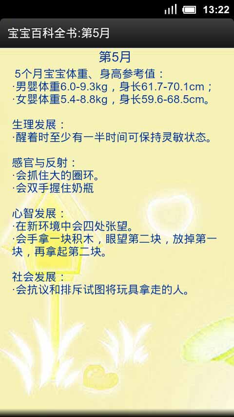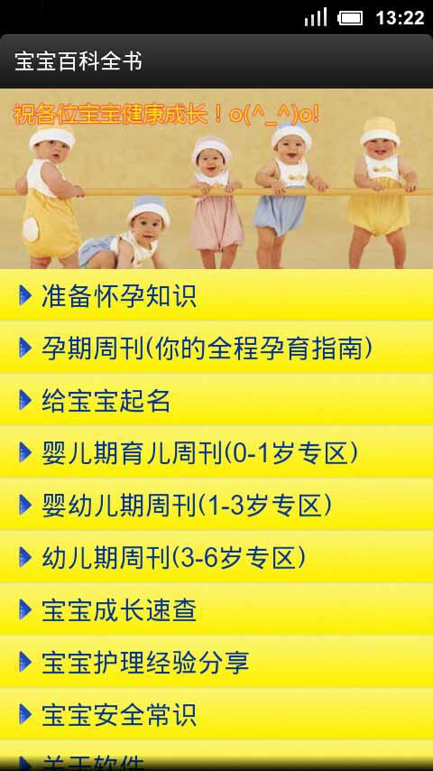 宝宝百科全书app,介绍了0-1岁婴儿发育指标,0到6岁婴幼儿日常护理介绍。包括发育指标查询,喂养要点,安全防护,早期教育等内容,更有作者独家经验分享,内容分类清楚,查找方便,随时随地想看就看。是您照顾宝宝的好帮手。