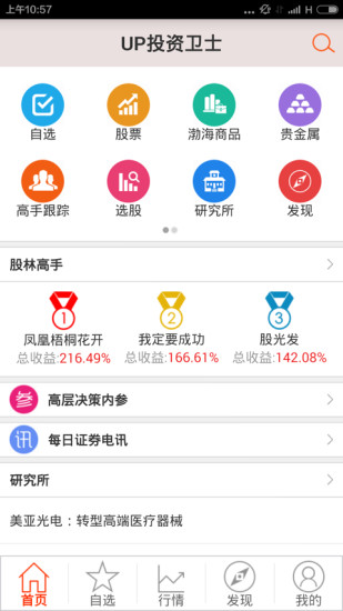 UP投资卫士app,手机上的免费炒股软件!独特的安全决策体系和及时的信息传递,让你走在其它投资这的前面,更早的发现牛股,快来飞翔下载吧