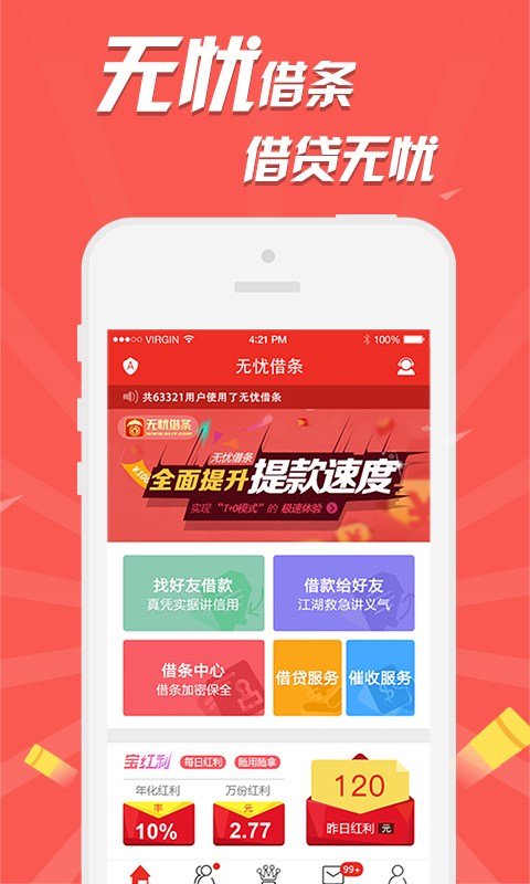 无忧借条通过为用户提供CA认证、第三方数字存证、200多家公证处等多方认证的电子借条,以及专业的欠款催收服务维护广大用户的财产利益。并行提供0风险理财服务。