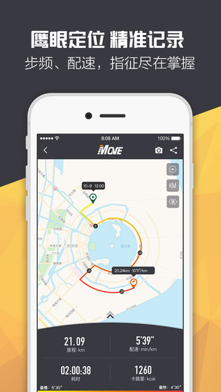 1、跑步指标追踪—「不只记录轨迹」:鹰眼般精准定位,配速、距离尽在掌握。通过数据记录跑步的点点滴滴!