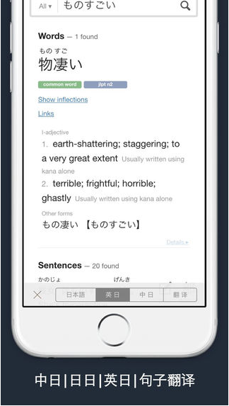 MOJi辞书是一款日语翻译软件,给用户提供了快速查词、联想等功能,您可以使用MOJi辞书一键搜索中文、假名、汉字、英语,MOJi辞书收录了10万离线词条,可以满足大家的所有日语搜词翻译功能,欢迎喜欢的小伙伴来飞翔下载使用。