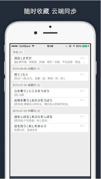 ④ 随时收藏生词,云端自动同步;