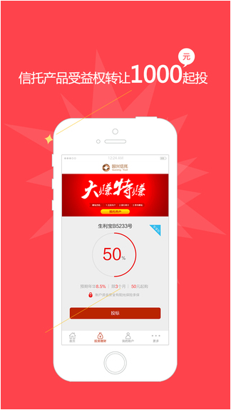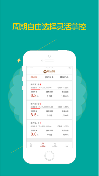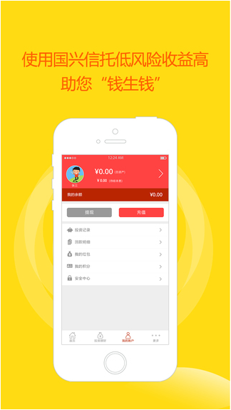 国兴信托app是一款金融理财平台,国兴信托门槛低、收益高、无风险,能保证用户投资收益的最大化,多重安全保障体系,尖端操盘手完美管理你的资金,平台主要业务以基金为主,欢迎广大投资者前来咨询。