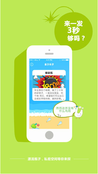 漂流瓶子, 90后小鲜肉交友神器每天有752,831,280个漂流瓶,遇见缘分的万能钥匙漂流瓶子不加好友,只和陌生人玩。只说想说的话,只聊想聊的天;漂流瓶子,一个完全奇趣新鲜的新空间。