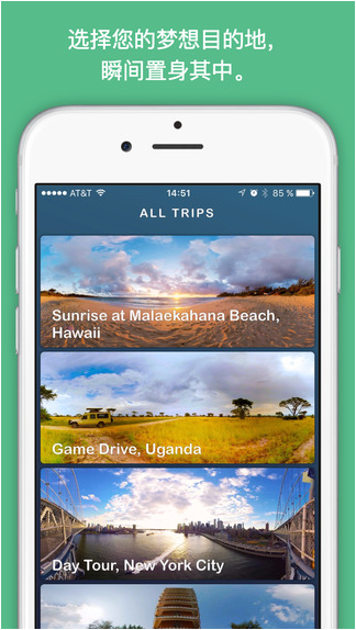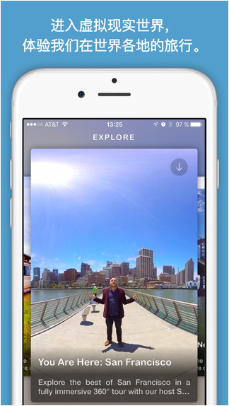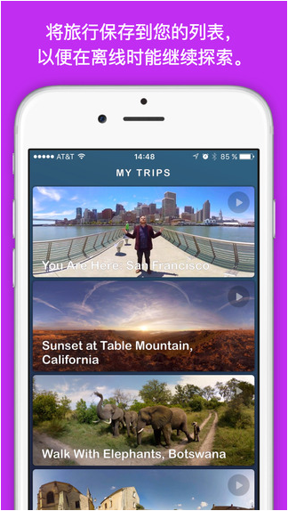 现在,您可以身临其境地体验由由市长候选人担当导游的旧金山360度虚拟现实之旅,探索佩特拉的古老庙宇,在圣彼得堡上空飞翔,与博茨瓦纳的大象一起漫步,甚至与海豚一起游泳,一切通过您的智能手机实现。下载之后,您就可以离线观看旅行视频。