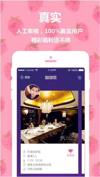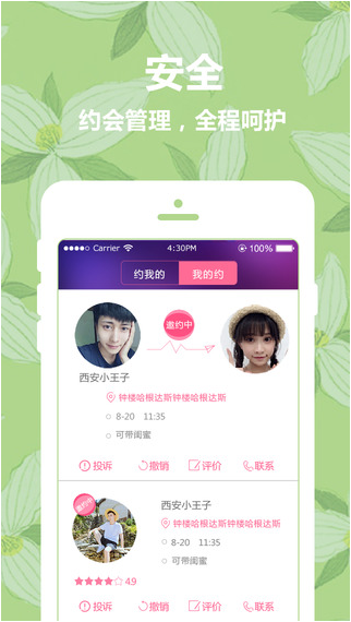 【真实】所有发约/应约的用户必须全部进行人工审核实名认证,没认证的用户无法参与见面约会,彻底拒绝虚假用户