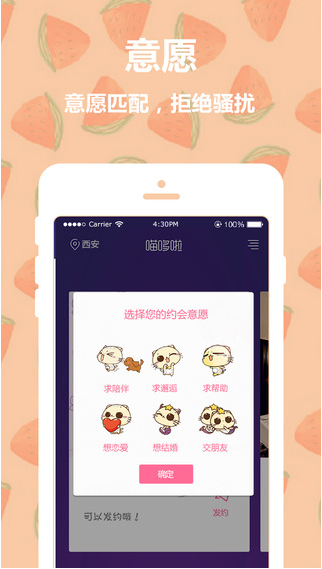 喵哆啦,一款只做见面交友的APP,您的约会管家。在这里,你会找到心仪的他(她)线下一起吃饭,一起聊话题,一起恋爱,一起做喜欢做的任何事......喵哆啦的世界里没有约不到,只有想不到!只要你肯发约,就会带给你不一样的惊喜体验。