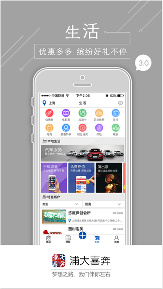 浦大喜奔,是一个生活金融服务应用。该平台精心开设了精品推荐、小浦娱乐、小浦商城、小浦生活、小浦账户等特色板块,将游戏、理财、生活服务、特色活动和移动商城合为一体,为客户提供全方位的金融消费生态圈的特色服务平台。