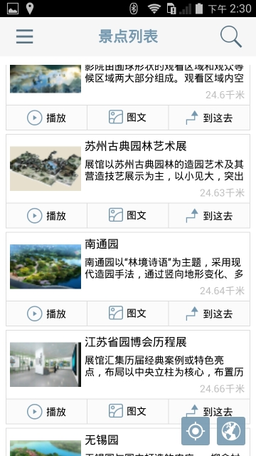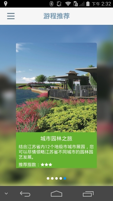 苏州园博会是一款服务于第九届江苏园艺博览会智能导览系统,为游客提供智能化的自助服务,通过手机和后台中央数据库所形成的网络控制系统,以语音播放等方式将旅游园区的服务和景点内容传递或展现给游客。让游客在园区内能够通过自己的手机在园区内快速获取帮助,不仅可以进行GPS定位来了解自身所处位置,以及周边服务设施,还可以了解当前景观的来龙去脉和文化底蕴,从而给游客带来全方位的体验。主要功能包括:地图导览、游程推荐、景区资讯、景区活动、交通指南、服务信息、一扫无疑、个人中心和设置。
