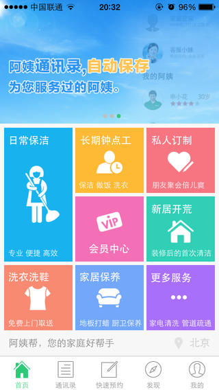阿姨帮是一款预约日常保洁、大扫除、新居开荒、衣物干洗、鞋具洗护服务的手机软件。预约后,客服小妹将为您快速安排上门服务,服务完毕您可对服务进行打分和评价,帮助我们不断改进服务质量。统一价格让您更放心;上门服务让您更省心;五星级服务让您更舒心。