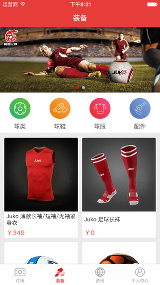 为用户提供了“鞠客足球”品牌足球、球鞋、球服、足球配件等全方位装备购买渠道。
