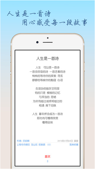 在这里不需要有多么好的文学功底,零起点,只要你热爱生活,热爱文字,就可以发布属于你的诗篇。在这里,你会找到与你有共鸣的人,也有和你交流写法的人,你会看到更多好诗好词。