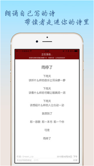 自己写的诗可以朗读啦,文字加上有情感的声音,带给读者不一样的意境。