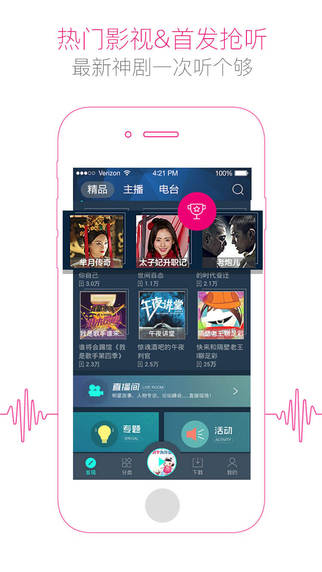 汇聚35万集正版有声内容,13万小时有声小说,3000多个直播电台,同时为用户提供自录音频上传及分享功能。