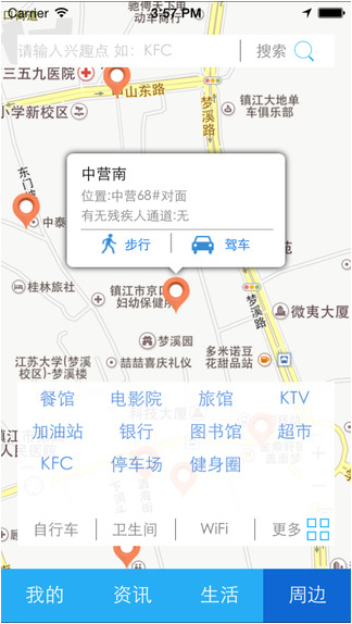 3、“公共自行车查询”(主要实现可借总数、可借数、空车位等,点击进入借车点还可查询路径轨迹);