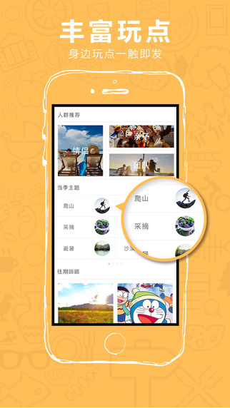 玩点、度假村、民宿、采摘、同城活动、市里娱乐场所等周末度假类产品一应俱全!