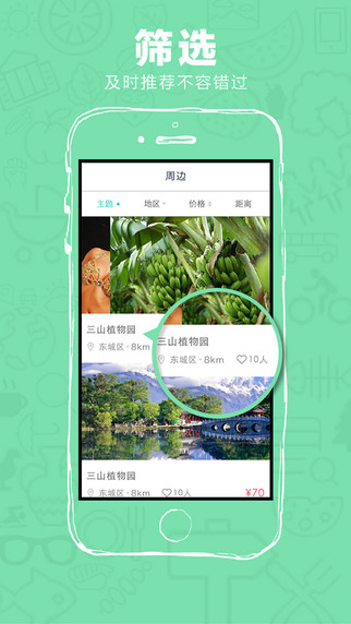 108天周边游iphone版是由北京十方途创旗下开发的一款整合城市周边吃喝玩乐攻略的app,内容包括周边景点、度假村、农家乐、采摘园等周末度假类产品一应俱全,并且还有交通出行方式推荐,景点信息介绍等服务。