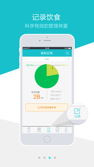 记录:记录自己的三餐和运动情况,真正合理膳食,既营养健康又能控制热量摄入;