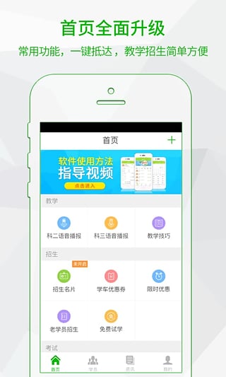 教练员的移动笔记本,在线小助手,帮助教练记录学员信息,管理学员驾考动态。开创新型视频实时互动教学,打开电脑瞬间连接学员,从此在家也能上课了!网络课程表实时更新,打开手机即时查看变动,翘课逃课早知道。