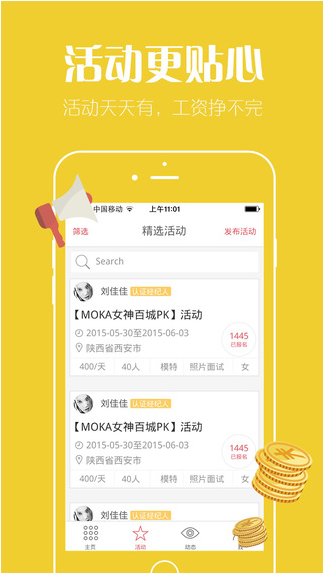 MOKA-模特演员兼职活动平台 加入活动通告 人个秀 第三方登录等新的功能
