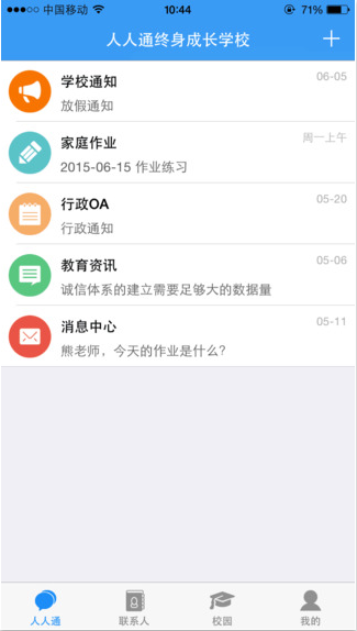 “人人通”是根据教育部“三通二平台”的建设要求,基于互联网技术与移动互联网技术为老师、学生、家长提供的智能家校沟通、学习、分享平台。