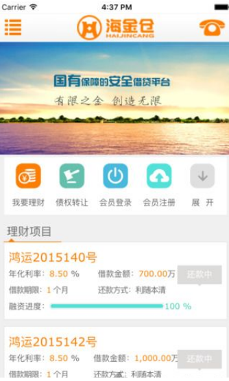 海金仓app官网iOS版,一款非常创新的投资手机平台,它为您提供了丰富的理财产品,一键账号注册即可进行投资理财!欢迎大家下载海金仓app官网iOS版体验!