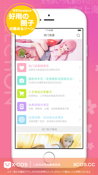 3、社区讨论:COS综合、COS道具、COS后期、COS化妆、COS摄影、视频、COS吐槽、COS招募、漫画、动画、COS名录,应有尽有!