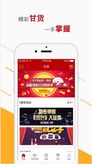 甘货app是一款集购物、浏览为一体的本地应用,海量本地活动等你浏览,每天上班、下班、睡前用手机要做的三件事:刷微博、聊微信、玩甘货! 生活很无聊,不知道身边又有哪些新活动?