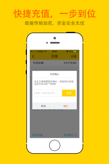 只需输入银行卡号,短信验证码,即刻快速充值