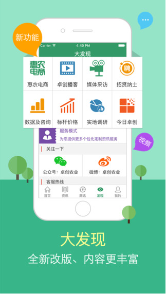 卓创农业app是由中国大宗商品资讯第一门户山东卓创资讯集团有限公司推出的农业资讯平台,在这里用户可以获取到即时资讯、数据、常规报告、高端报告、增值服务、品牌服务等相关的农业资讯,是一款不可多得的农业专业资讯平台,欢迎从事农业喜欢农业的朋友前来飞翔下载!