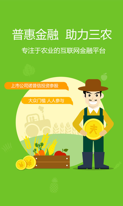 农发贷系国内第一家“结合农业生产场景”的互联网金融平台,获得上市公司诺普信(股票代码002215)投资。农发贷秉承“普惠金融,助力三农”的使命,专注于“农资消费金融”和“农资供应链金融”。农发贷通过介入“农户农资消费场景”、“农资经销商进销存场景”,有效降低信息不对称性,提高风险定价的精准性,同时运用创新的互联网金融工具,将社会理财资金高效地运用于农业生产,解决三农“融资难、融资贵”的问题,满足农业发展中的资金缺口,同时为投资者带来安全高效的回报,分享农业现代化发展红利。