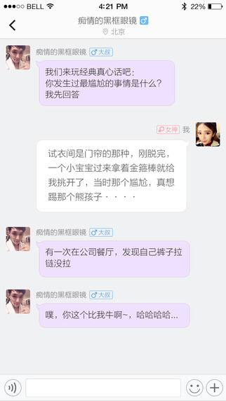 抱抱App新一代的陌生人社交软件,在编辑看来很多事情不方便和亲朋好友们说,像陌生人倾诉的话可以让你很好的疏解心情,而抱抱App就是这样一款基于陌生人社交的应用,可以让你随时和陌生人交流,每一句回复,都有人立即和你互动,你会觉得自己不再是一个人,不再孤独。