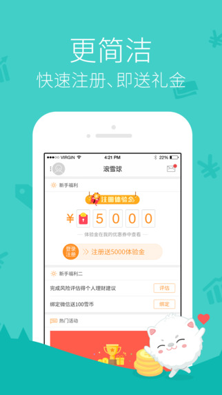 滚雪球是一款专注于移动端的综合性理财投资平台,目前已获得国际顶尖风投红杉资本和人人网的B轮5000万美元融资。针对大众市场,专做小额低风险的理财产品,目前用户已数百万,投资规模超过10亿元。