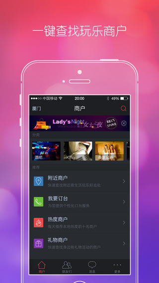 ◆ 我们追求着,将“夜”做到更专业!还有更多更多~值得你来细细挖掘哦! 今天你有约吗?有,夜都市带你享受最纯粹、最全面、最时尚的夜。没有,夜都市帮你搜罗有共同兴趣的好友,呼朋引伴,人生何须惆怅?