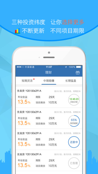 玩法多变:天天利、优易贷、车易贷、金信宝,多款理财项目,总有一款为你存在