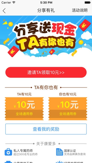 7. 分享有礼:分享您的专属邀请码,让您与您的朋友们都获得优惠券奖励!