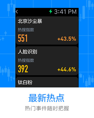 聚合海量股民搜索数据和全网新闻资讯,按热度排列呈现当日最新热点事件。通过对海量数据的分析,产生百度独家的热搜指数,预判热点的趋势发展。并根据个股数据相关度匹配个股,快速命中事件影响股,让您投资决策更快更有效。