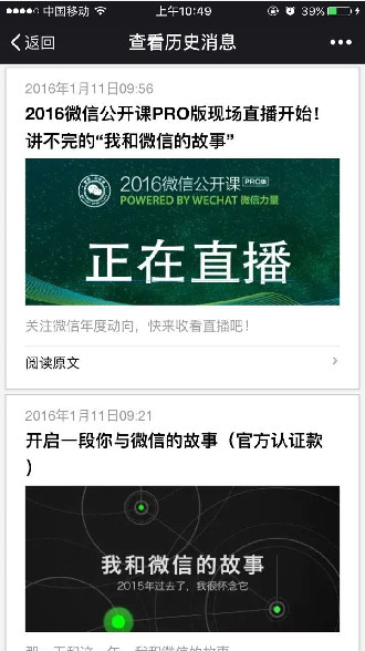 昨天开始风靡朋友圈的的“2016开启你与微信的故事”——微信官方认证活动就是“微信公开课”官方推出,昨天还只是测试版,今天九点半“开启一段你与微信的故事”正式上线咯!大家关注“微信公开课”查看历史消息里面就有入口哦