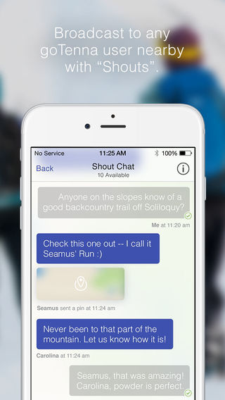 goTenna便携式天线app是一款户外旅行应用工具,同时适用于广大探险家与野外工作者,面对突发的意外状况,goTenna便携式天线可以让你化险为夷,当用户配备goTenna便携式天线硬件时就可以通过手机进行通话,无需任何费用,手机蓝牙连接硬件设备,解决了野外信号差,没信号的尴尬局面,为用户的工作、旅行增加一重安全保障。