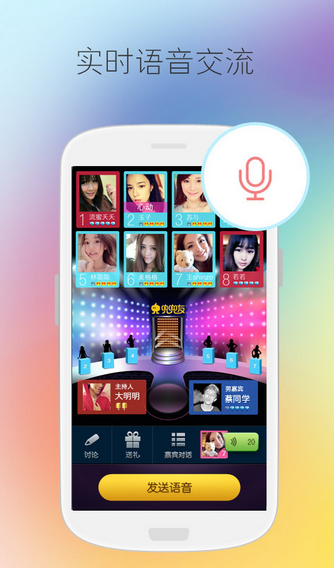 1、炫丽会场 8女1男1主持,舞台上实时语音,聊天吐槽乐在其中。
