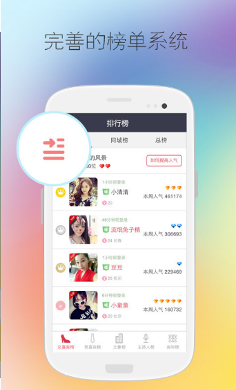 3、人气榜单 各类榜单时时更新,做社交圈的焦点人气王。