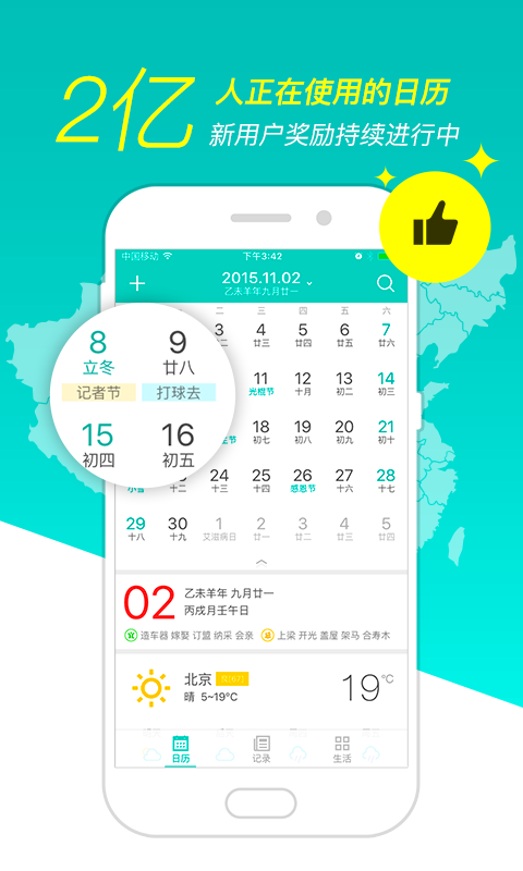 1、日历:农历黄历随便看,择吉而动出行便。假日节气道道全,每天都是好时节。