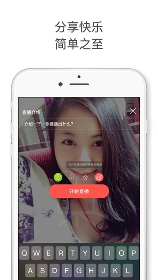 -将直播分享到微博、微信和QQ,你的朋友可以立即与你互动。