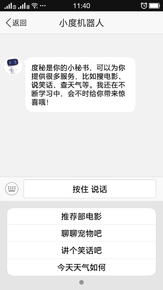 ● 更多技能:度秘还在不断进化中,努力学习更多的技能,会不时给你带来惊喜;