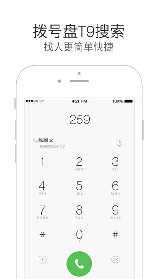 1、新增拨号盘,T9快速搜索联系人;
