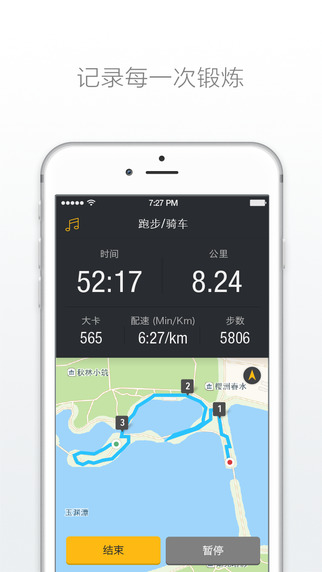 -无须注册与额外配件,零使用门槛,实现24*7小时自动后台运行,实时数据记录,最简约、精确的运动管理软件
