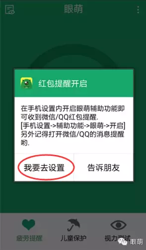 只限安卓手机用户哦,打开眼萌APP的“红包提醒”,花十几秒钟按提示操作就可以了