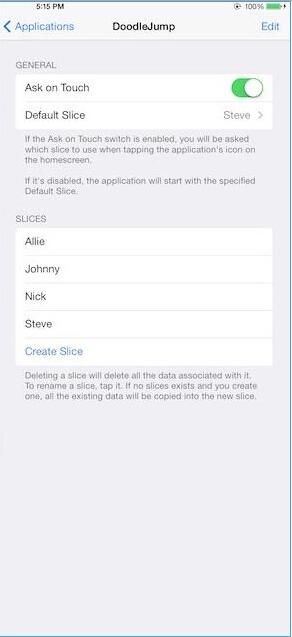 安装Slices插件的好处:以上所有功能需求,都被Slices这个小插件实现了,安装Slices,您只需在他的设置中选择一个app然后设置Slices用户即可。点击已设置app图标,弹窗提示您选择Slices用户,除默认账号外,其余Slices用户下开启该app均以第一次开启形式向您展示信息,您可进行登录不同账号等操作,也就是说您可以快速从app图标切换不同的该app账号,完美解决了共存版复杂且占用桌面位置问题。数据问题Slices也考虑到了,每个Slices用户都有自己独立的数据包,互不干扰。